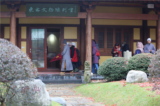 通过东林寺法师们的详细介绍,参访团一行对东林寺人文景观、历史典故和建筑特色有了更深的了解,并时不时地发出赞叹。