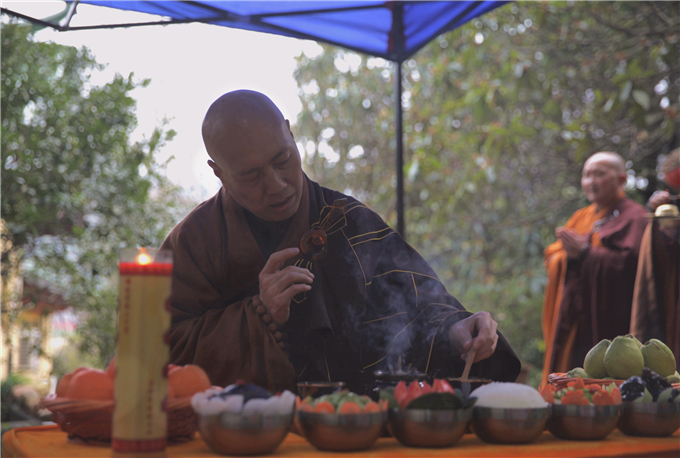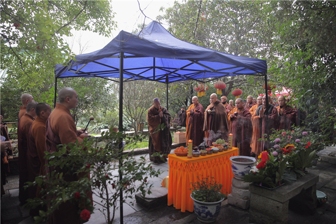 2018年冬至庐山东林寺举行扫塔祭拜仪式