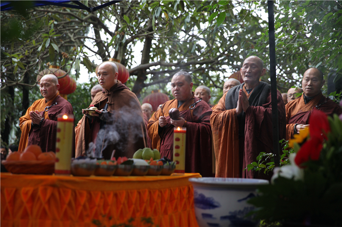 下午3时30分,扫塔祭祖活动圆满结束。正值冬季佛七,大众云集东林寺,精进念佛共修,以此念佛因缘,愿入如来大誓海中,临命终时,蒙佛接引,往生极乐,愿祖师乘愿再来,常为人师,广度群迷