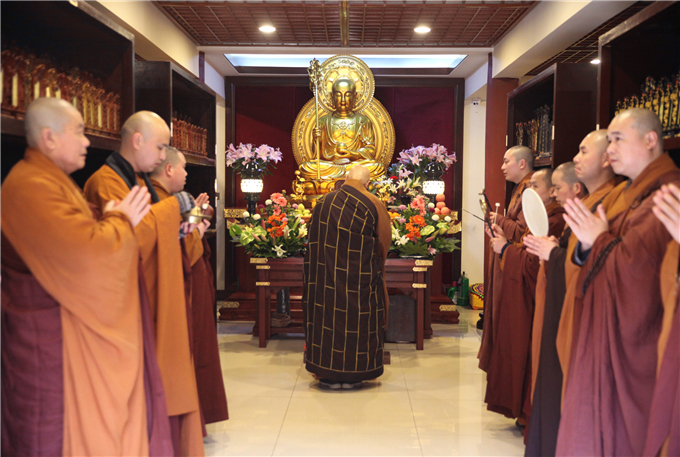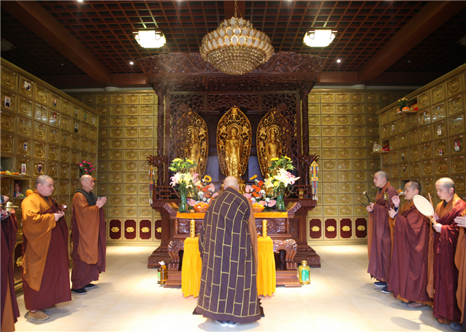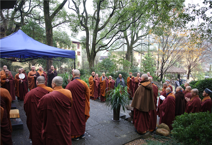 2018年12月22日,时值冬至,又逢12月23日(农历十一月十七)恭迎阿弥陀佛圣诞日,下午1时30时分,东林寺部分常住法师和居士在大安法师的主法下,举行扫塔祭拜仪式。