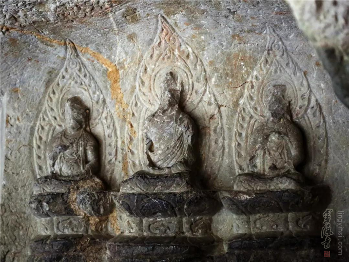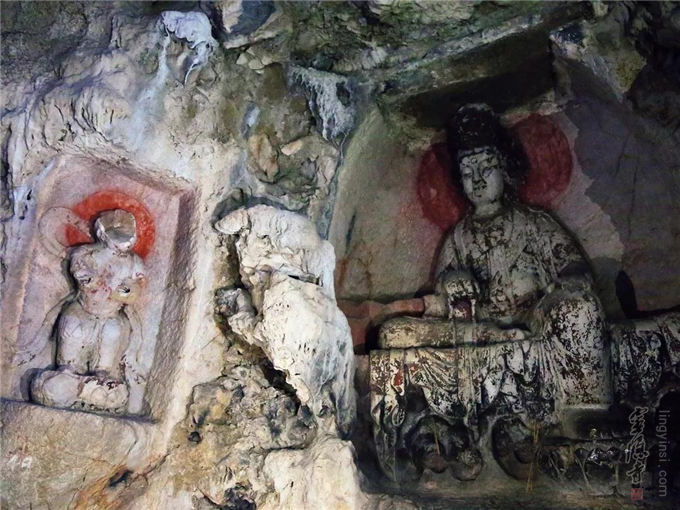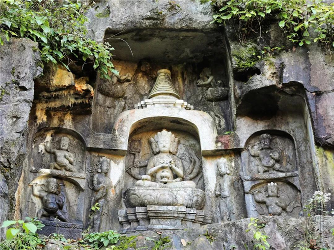五代时期的小型“西方三圣”像是飞来峰造像中最早的石窟佛像