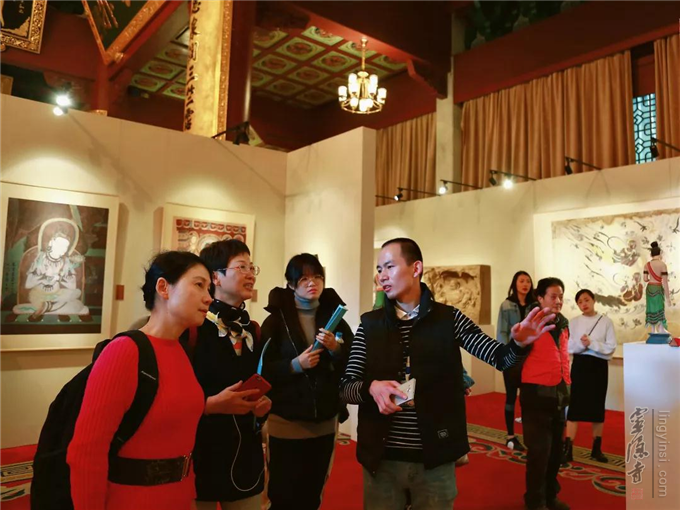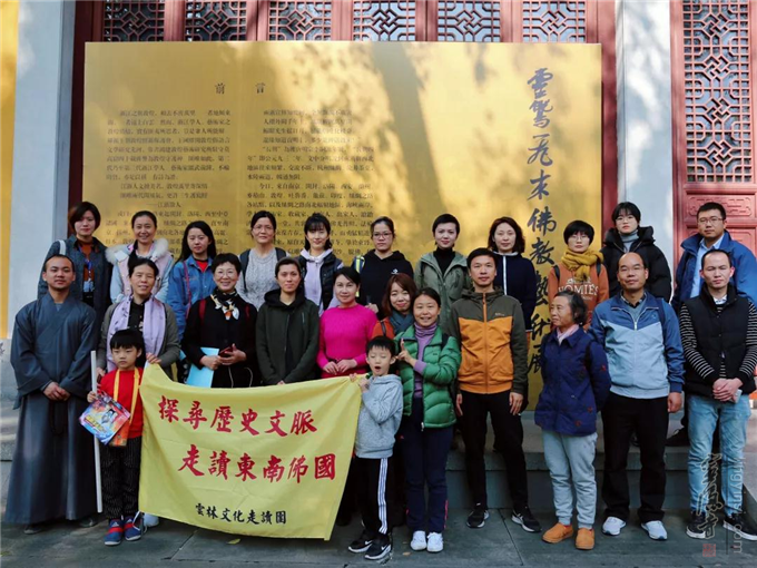 走读团成员进入灵隐寺。通过智法法师的解说,大家了解了灵隐寺的开山建制、韦陀菩萨像与经幢佛塔等宋代文物。在直指堂,走读团成员参观了由浙江飞来峰艺术研究中心(筹)主办的“灵鹫飞来佛教艺术展”。