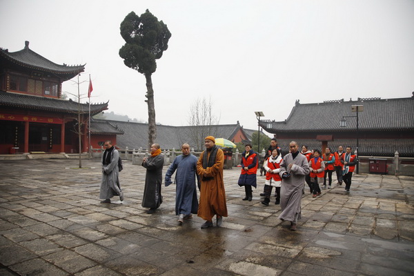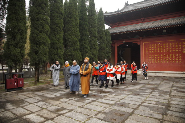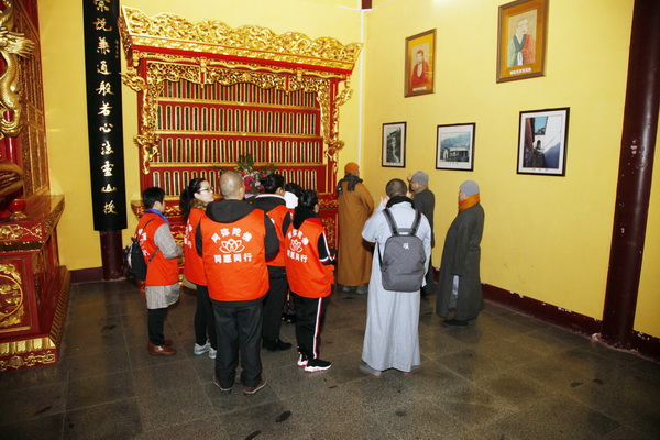 监院崇顿法师首先带领参访团一行参观了四祖寺各主要殿堂、向大家详细介绍了寺院历史及发展现状,参访团成员至大雄宝殿在宽静大和尚带领下一同礼佛。