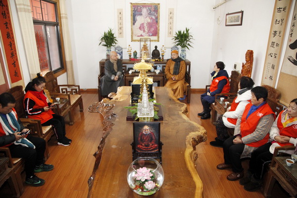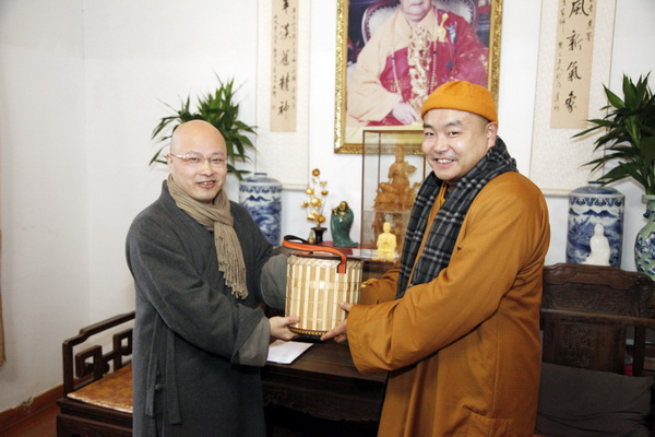 2018年12月12日下午,澳门最大的爱国爱教佛教联合组织——澳门佛教总会理事长宽静大和尚一行13人莅临四祖寺参访,本寺方丈明基大和尚、监院崇顿法师、知客崇昭法师及耀德法师等代表常住热情接待了参访团。