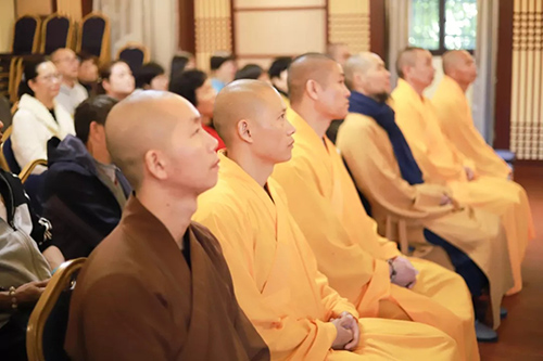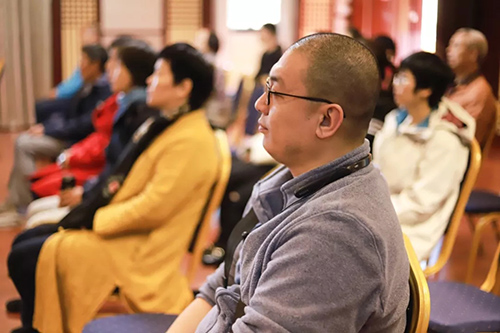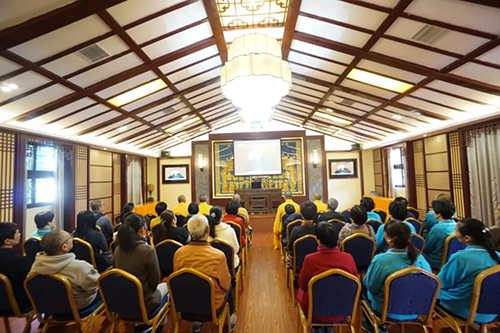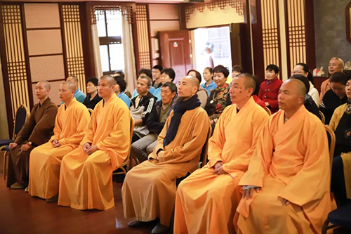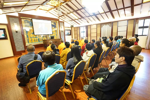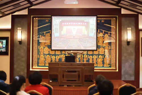2018年12月18日上午10时,石室禅院组织四众弟子在三宝楼三楼会议室观看庆祝改革开放四十周年大会直播,向改革开放四十周年致敬。