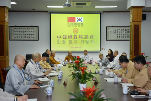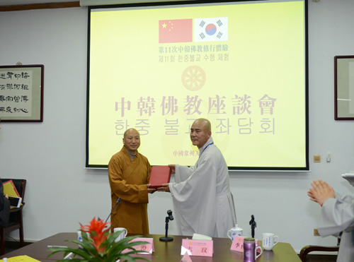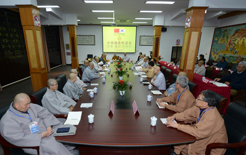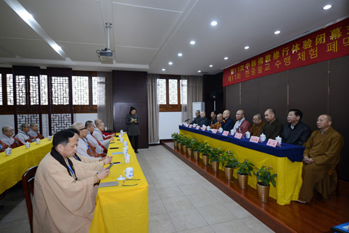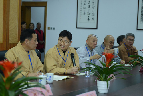 修行体验期间,韩国代表团在寺院禅堂体验汉传佛教参禅念佛的双修精进,比较了中韩两国佛教在禅修方面的相同与不同之处。此外,特别值得一提的是在11月26日晚举行的中韩佛教座谈会上,双方回顾友好历史,述说法脉传承,阐述教理教义及修行经验。江苏省佛教协会会长心澄法师和韩国代表团团长志玟法师为与会法师做了开示后,与会韩国法师代表踊跃发言,积极分享此次修行体验的感受,对中国佛教发展盛况赞叹不已,同时对此次修行体验给予了高度的肯定。整个座谈会围绕“佛教应如何对信众进行教育培训”、“比丘尼的培养教育方式及其在佛教发展中所发挥的作用”、“佛教该如何在大众心理辅导方面发挥作用”、“佛教如何应对信息爆炸时代的冲击”等主题进行了深入探讨交流,江苏省佛教协会副会长大初法师、江苏省佛教协会秘书长理海法师对韩国法师代表提出的问题一一答疑解惑,双方共同探讨佛教长远发展的实质性问题并达成共识。