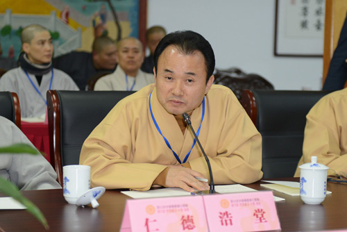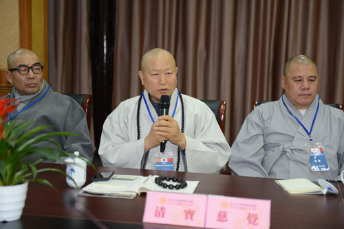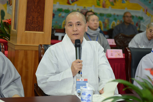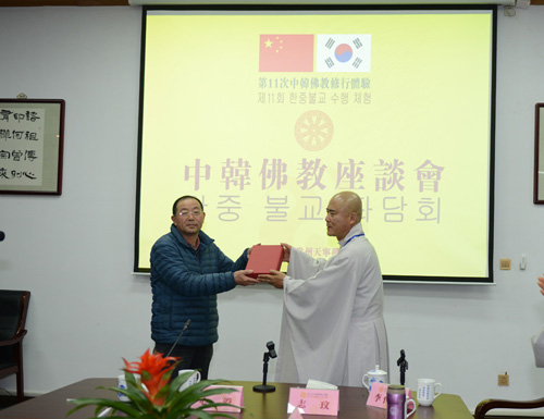 最后,江苏省民宗委宗教处处长刘克元在致辞中表示:古往今来,中韩两国隔海相望,两国人民友好往来源远流长,两国佛教同根同源、法乳一脉,佛教对两国的文化交流一直发挥着重要作用,佛教从中国传入朝鲜半岛以来,两国佛教界的交流从未间断,江苏省作为朝鲜半岛来华求法的中心地区之一,到处都留下了中韩佛教友好往来的佳话,种下了两国殊胜法源的种子。“黄金纽带”的大框架下开展的第十一次中韩修行体验,两国佛教界汇聚一堂,交流参访,听取座谈,参禅,共同探讨关系佛教长远发展的话题。丰富了两国友好交流的文化内涵,同时延续了两国佛教的深厚法谊。展望未来,希望两国佛教界能抓住机遇,在新时代更加广泛地开展寺院间的交流互访,分享寺院管理、佛教文化、公益慈善、人才培养以及弘法利生等方面的经验。