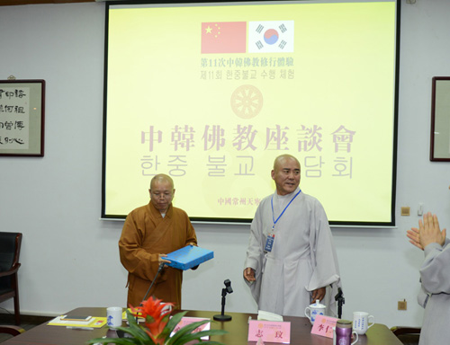 志玟法师在闭幕式致辞中说:中韩两国佛教法乳一脉,在缔结黄金纽带友好关系的基础上,中韩佛教修行体验活动已成功举办了二十一次,此次修行体验在多方的悉心周到安排和支持下圆满成功,韩国代表团收获良多,对此深表感谢。同时他还充分肯定了这一活动对于中韩佛教交流的重要性,期待中国法师到韩国交流,使两国佛教界佛缘法谊长远坚持、更好发展。