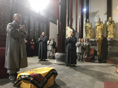 2018年11月27日上午,“第11次中韩佛教体验修行”活动在天宁寺护法殿圆满闭幕。江苏省民宗委宗教处处长刘克元、副处长张新进,常州市民宗局副局长颜良进;中国佛教协会副会长、江苏省佛教协会会长心澄法师,中国佛教协会副会长、湖北省佛教协会会长正慈法师,中国佛教协会副秘书长、国际部主任普正法师,江苏省佛教协会副会长大初法师,江苏省佛教协会副会长、常州市佛教协会会长、常州天宁禅寺与清凉禅寺方丈廓尘法师,江苏省佛教协会秘书长理海法师;韩国佛教宗团协议会事务总长、代表团团长志玟法师以及韩国佛教体验修行团全体团员参加闭幕式。