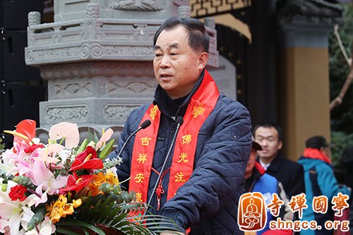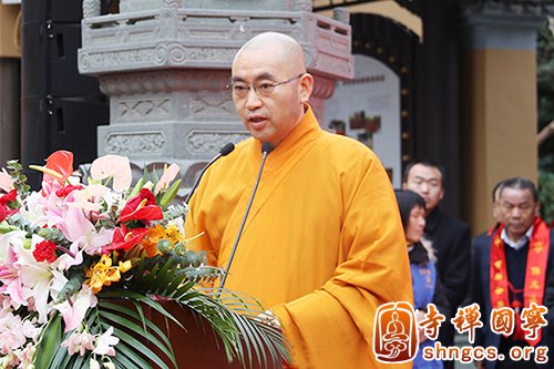 慧明大和尚、中共徐汇区委统战部副部长、区民宗办主任王云华、徐汇区华泾镇镇长黄科以及信众代表桂国杰分别致辞。对宁国禅寺取得的成绩给与充分肯定,对宁国禅寺未来的发展寄予深切厚望。希望宁国禅寺全体同仁,在党和政府领导下,遵从宗教法规政策,秉承佛陀教诲,发扬人间佛教精神,齐心协力把宁国禅寺建设好,为传播佛教文化、构建和谐社会做出贡献。