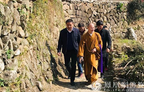 本性法师、福安市副市长林海一行走访东坑村(图片来源:凤凰网佛教 摄影:王枫涛)