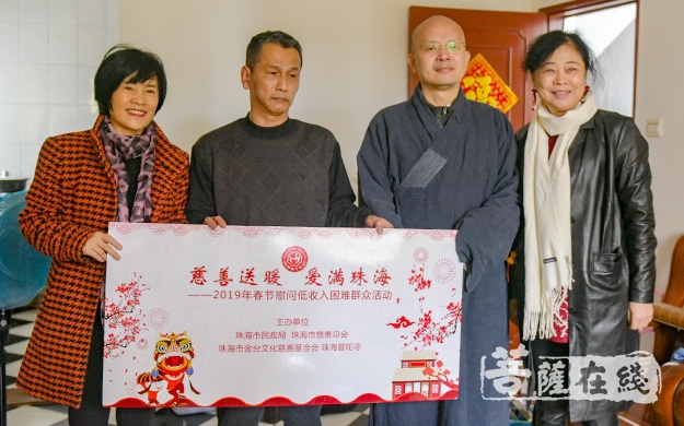 2019年新春佳节前夕,珠海市民政局组织珠海普陀寺、市慈善总会等爱心单位,开展“慈善送暖 爱满珠海”——2019年春节慰问低收入困难群众活动,为珠海市520户低收入困难群众送去新春的慰问和祝福。