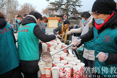 汶上宝相寺往年腊八节施粥现场(图片来源:凤凰网佛教 摄影:汶上宝相寺)