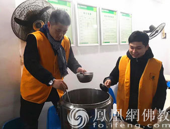 洗心义工将热腾腾腊八粥送到敬老院(图片来源:凤凰网佛教 摄影:洗心基金会)