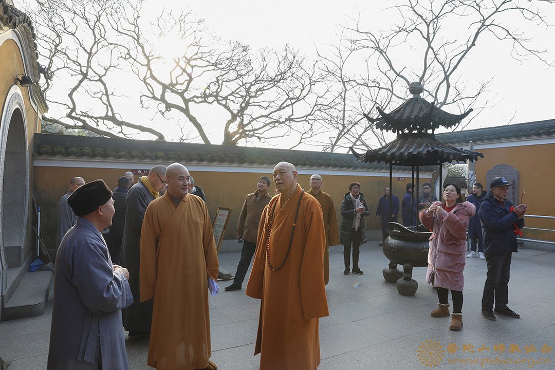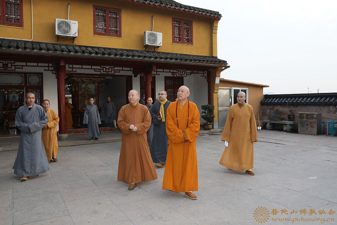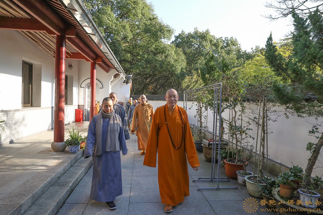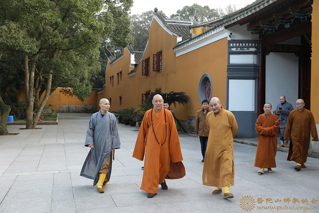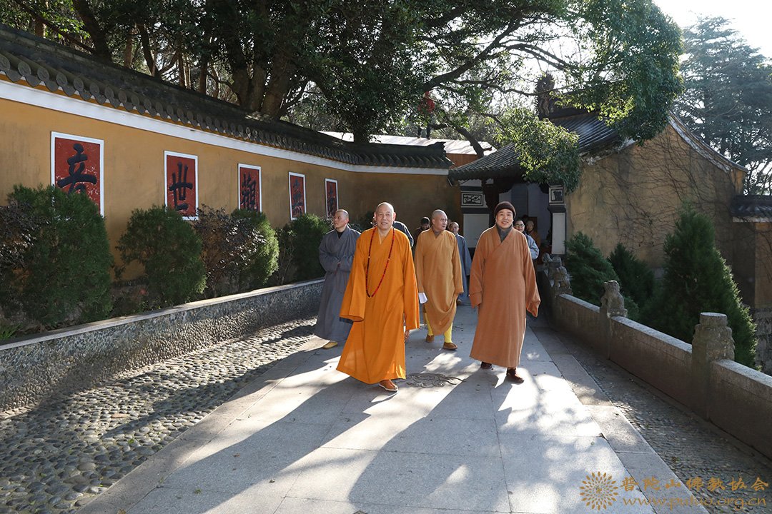 2019年1月18至19日,在新春佳节来临之际,中国佛教协会副会长、普陀山佛教协会会长、中国佛学院普陀山学院院长、普济禅寺方丈道慈大和尚,副会长定明法师等一行前往本山各寺院走访慰问。