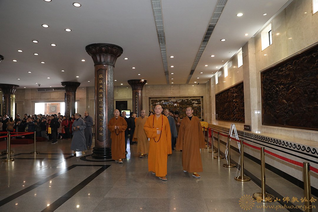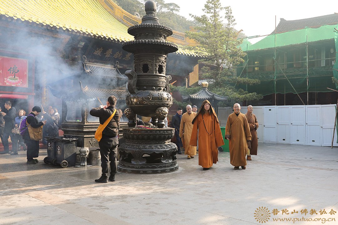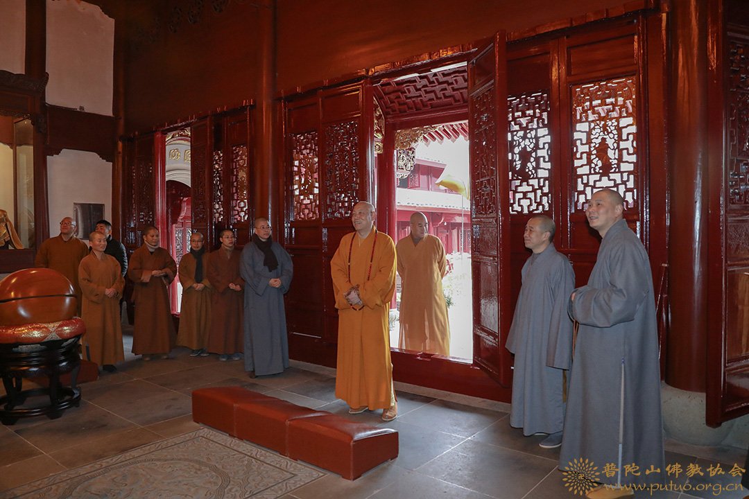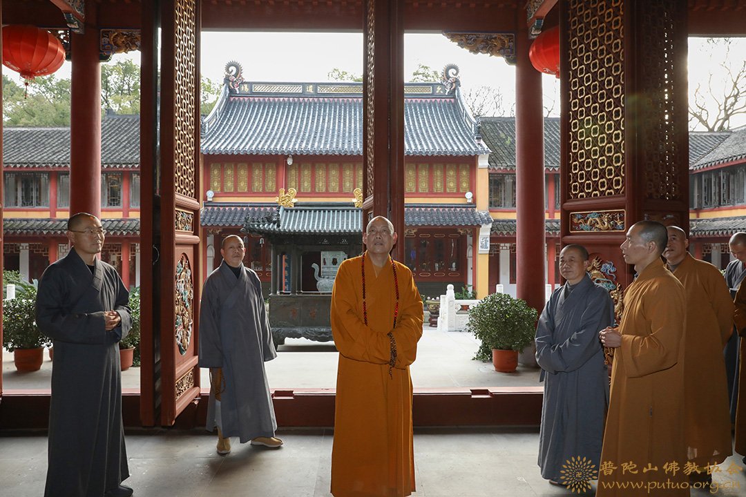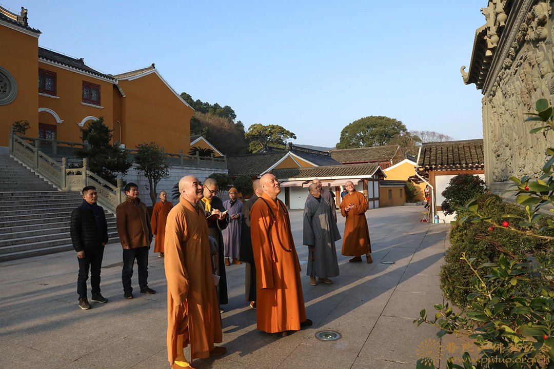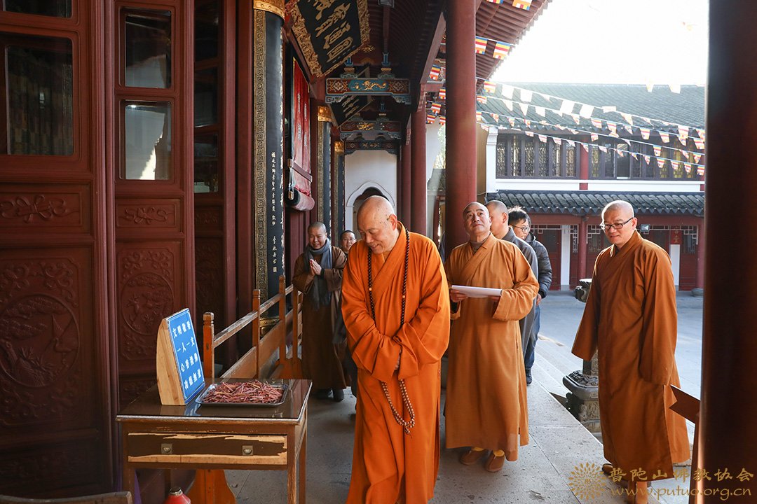2019年1月18至19日,在新春佳节来临之际,中国佛教协会副会长、普陀山佛教协会会长、中国佛学院普陀山学院院长、普济禅寺方丈道慈大和尚,副会长定明法师等一行前往本山各寺院走访慰问。