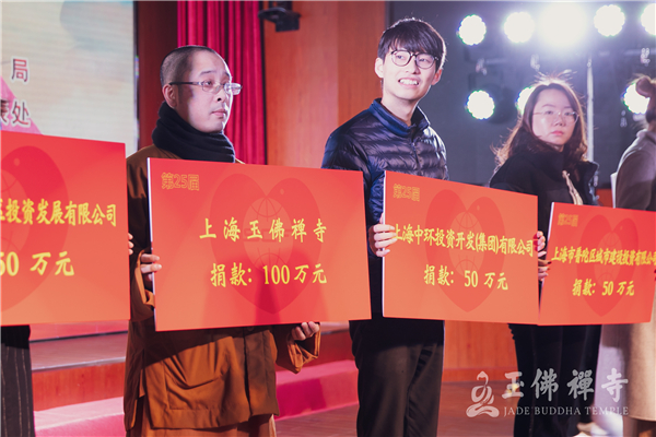 上海玉佛禅寺、上海觉群文教基金会共同向上海市慈善基金会捐赠人民币100万元,希望以此在冬日的寒风中发散出一股爱的暖流,增添人间温情。