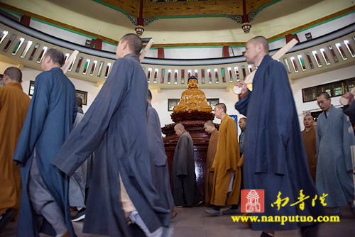 2019年1月18日,农历腊月十三,南普陀寺戊戌年“自在禅心”冬季禅七共修法会圆满,举行解七仪式,如法对参与禅七的法师和居士们进行考功,检验大众的禅修成果。