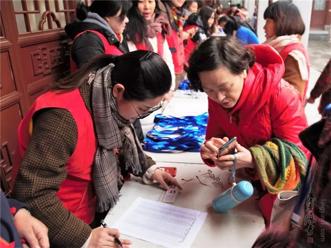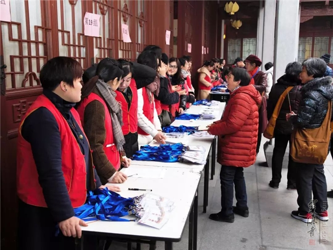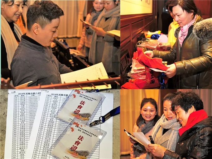 腊月初八一早十方信众前来参加盛会,云林志工团专门成立20个小组,在灵隐寺莲灯阁、大悲楼前负责接待、签到、发证、引导工作。初七晚很多人顾不上吃晚饭,忙碌到九点多。