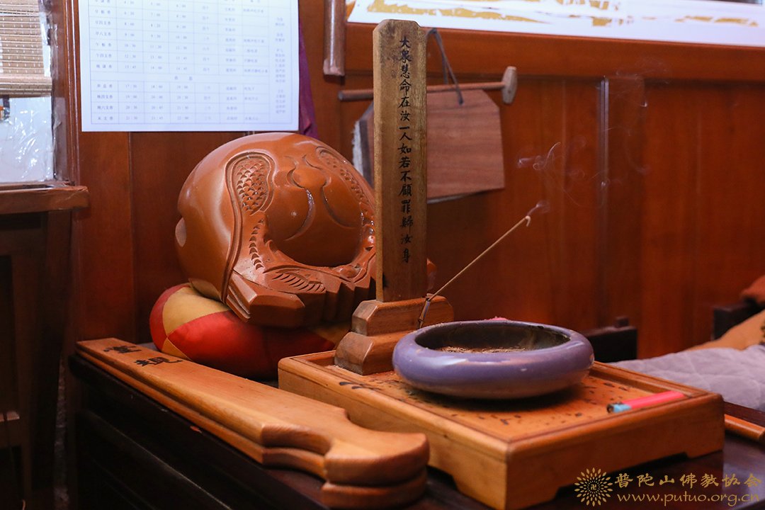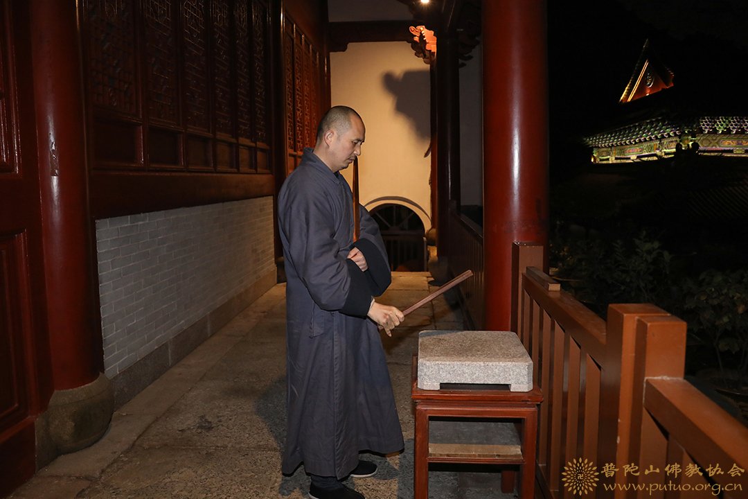 当值师父打引磬拜佛
