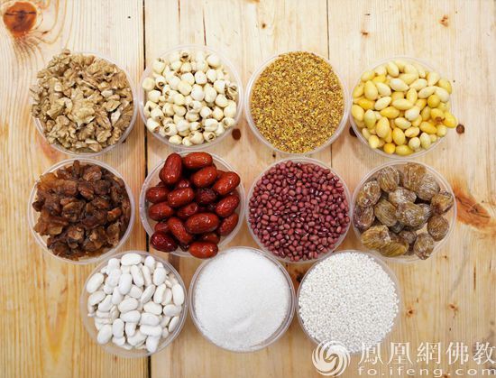 灵隐寺熬制腊八粥所用食材(图片来源:凤凰网佛教 摄影:灵隐寺)