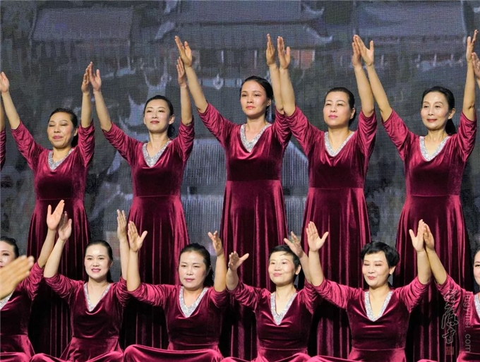 ▲群舞《送你一朵玫瑰花》·云林志工艺术团