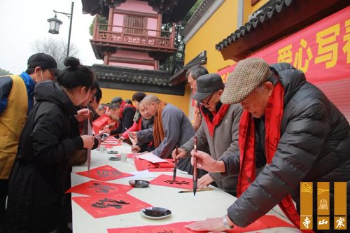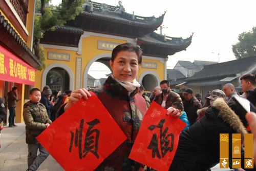 新年贴福字、贴春联是中华民族一直延续的文化传统,是象征吉祥、表达人们向往美好生活的民族风俗。寒山寺开展送春联公益活动,既增添了“年味儿”,又弘扬了民族传统文化。活动现场共写春联百余套,福字上千幅,将平安、和谐、祥和的气氛传递给大家,祝愿大家在新的一年了福慧双增、六时吉祥!