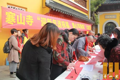 为了弘扬和合文化、和合精神与和合理念,1月20日上午,寒山寺举行“迎新年送祝福,爱心写春联”公益活动,让佛法走进千家万户,家家和和睦睦,年年平平安安。