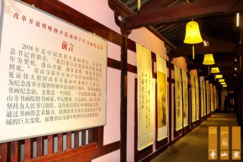 改革开放暨听钟声活动四十年书画纪念展于2018年12月30日至2019年1月3日在寒山寺塔院举行。寒山寺书画院的书画家,牢记使命,不忘初心,深入生活,坚持为人民书写创作,展出的近80幅精品力作,通过书画的艺术魅力,展现改革开放以来祖国各个领域的巨大变化,展现寒山寺新年听钟声活动新变化!