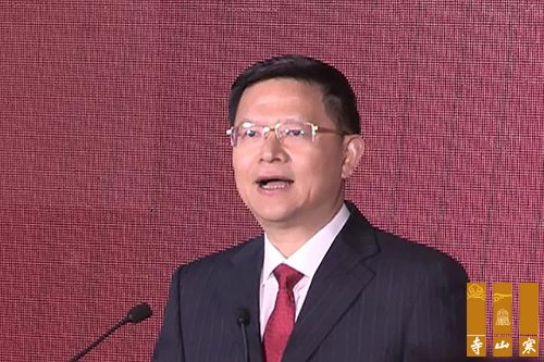 秋爽法师祝福宾客,祈福祖国繁荣昌盛,人民安居乐业,世界持久和平。