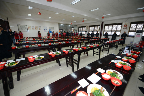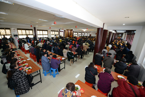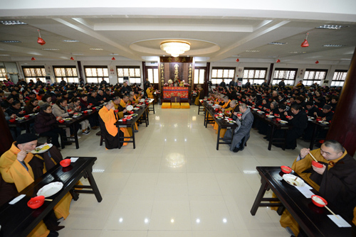 随后,大和尚展望了2019年天宁禅寺的工作内容,一是认真学习习近平主席的讲话;二是继续弘扬佛法并致力于天宁佛学院的创建;三是不断完善寺庙各项事务,把天宁禅寺这个大家庭建设好;四是继续推进慈善基金会活动,努力为和谐社会做贡献。义工们一边安静过堂,一边聆听廓尘大和尚的谆谆教导,内心祥和欢喜。