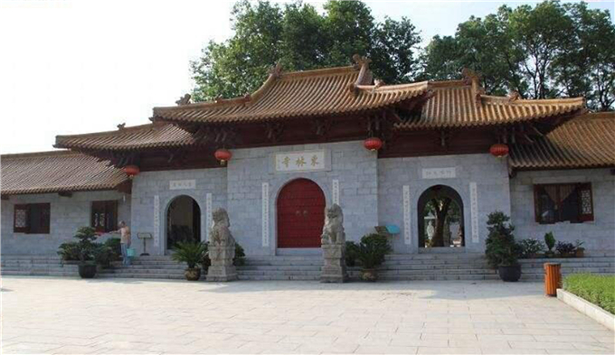 东林寺旧山门为砖木结构建筑,因年久失修,又加暴雨倒灌造成基础塌陷,已不堪重修。故此次新建山门为全木结构,采用宋式歇山顶,深灰色釉面瓦,所有木制结构均刷清油三遍,具有一定的防震和防水功能。建筑高度13.5米,面阔七间,总建筑面积234平方米。平面主体三间,东西各出两间耳房,使立面造型更加丰富。为达到古建筑的修建效果,各项施工工艺均采用传统工艺施工。
