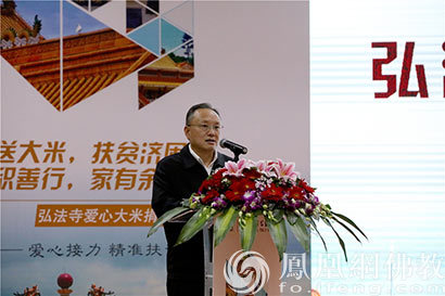 深圳市委统战部副部长,深圳市民族宗教事务局局长王子建在活动启动仪式上发言,他希望社会各界人士,以弘扬佛教“慈悲济世,扶贫济困”的仁人之怀,积极参与到这次爱心大米的慈善公益活动中,为需要帮助的人们奉献爱心。
