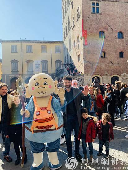 小布袋弥勒与意大利普拉托市市长MATTEO BIFFONI合影(图片来源:凤凰网佛教 摄影:小丹)