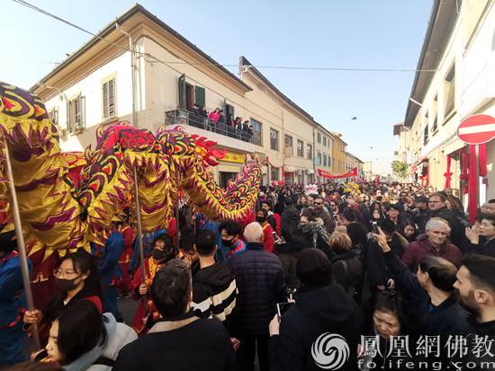 舞龙舞狮游遍意大利普拉托大街小巷(图片来源:凤凰网佛教 摄影:小丹)