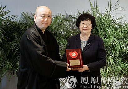 颁发捐赠证书(图片来源:凤凰网佛教 摄影:上海玉佛寺)