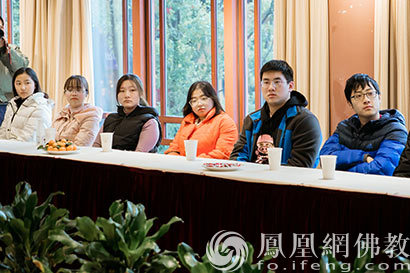 姚宗强女士向学子们祝贺新春、送上温暖和关怀。(图片来源:凤凰网佛教 摄影:上海玉佛寺)