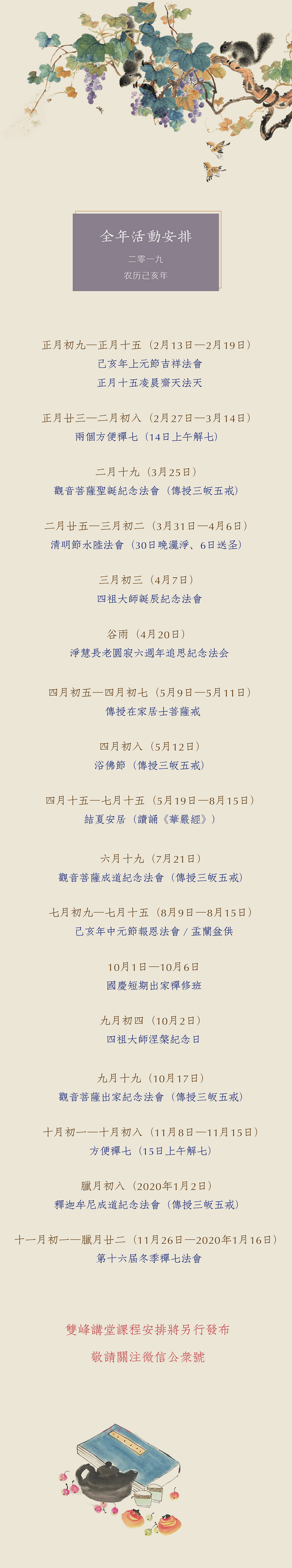 农历己亥年(2019)黄梅四祖寺全年法务活动