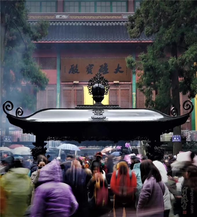 杭州人都有烧八时香(农历初八、十八、廿八寺院敬香)的习俗。2019年2月12日,己亥正月初八,春雨绵绵,寒风徐徐,香客善信灵隐敬香热情不减。一大早,从各地赶来的皈依居士在灵隐寺大悲楼前聚集,排班参加灵隐寺举行新春团拜活动。