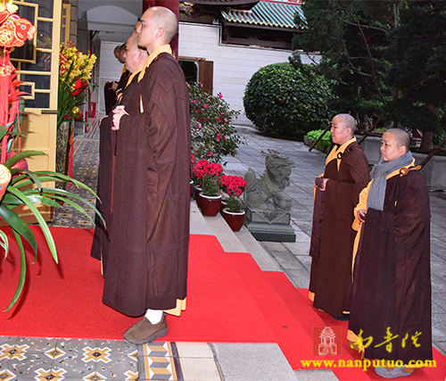 2019年2月12日,农历正月初八,厦门南普陀寺全体班首执事任职已满,谨依祖制,举行退职仪式。
