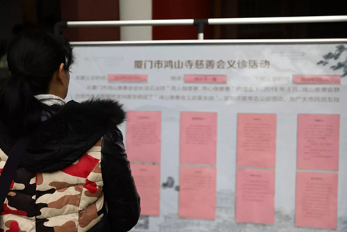 2月24日(周日)下午3点至5点,厦门市鸿山慈善会举办了2019年首场义诊活动,鸿山慈善会义诊医生团的十一名医生,在鸿山寺一楼为大众看诊,祛病化疾。