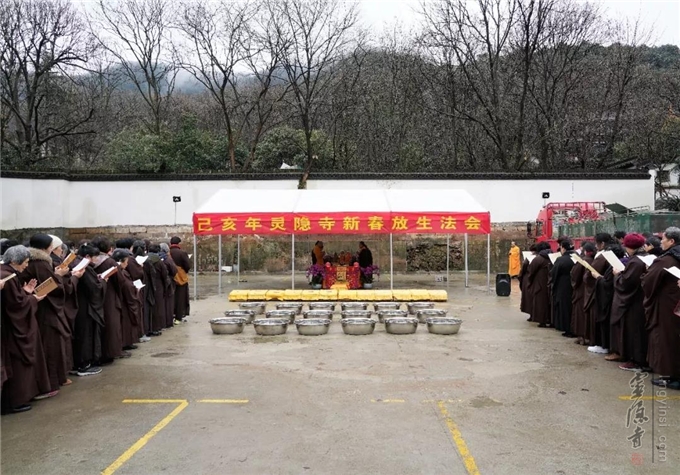 2019年2月19日,正值正月十五元宵佳节,杭州灵隐寺举行己亥年新春放生祈福法会,祈愿大众福慧双增,身心健康,吉祥如意。200多名居士善信在灵隐寺常住法师引领下参加放生法会。