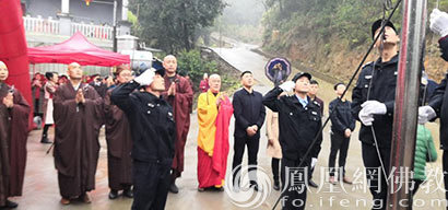 双峰寺生命关怀中心升国旗仪式(图片来源:凤凰网佛教 摄影:上栗双峰寺)