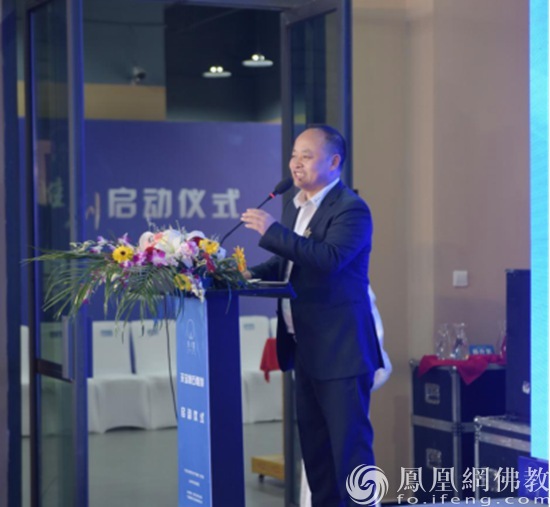 主办方代表浙江省宏德慈善基金会常务副理事长、宁波福善文化发展有限公司董事长史腾龙致辞(图片来源:凤凰网佛教)