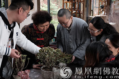 多肉植物专家在活动现场指导栽培技巧和养护方法(图片来源:凤凰网佛教 摄影:于椿根)