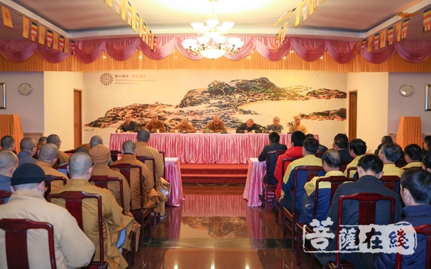 最后,道慈大和尚传达了两会精神,要求大众认真学习、领会,并落实到今后的具体工作中。道慈大和尚再次强调了香会期间安全保障工作的重要性,希望大众坚守各自岗位,圆满完成各项工作。并以贪为恶之首,欲为生死根,警勉大众勿攀缘、戒贪心、讲因果、重形象,谦和有礼,庄严三宝。要求大众进一步提高认识,始终坚持以寺为家,牢固树立正确的学修、工作态度,尽职尽责的服务好到山信众,共同维护好普陀山佛国道场的清净庄严形象。
