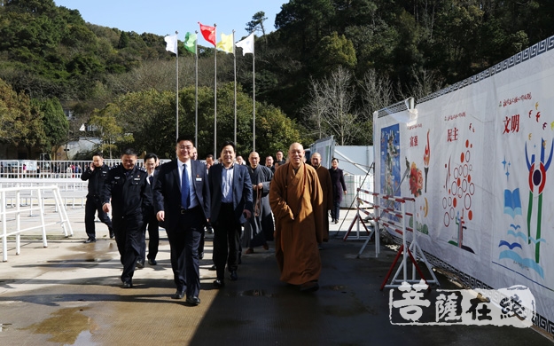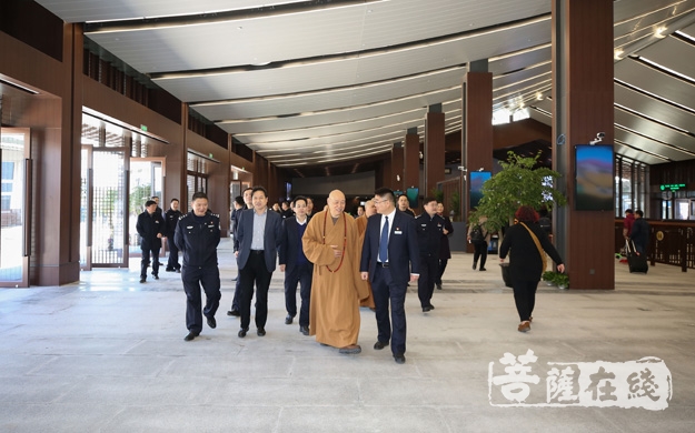 2019年3月23日上午,在二月十九观音香会期即将到来之际,中国佛教协会副会长、舟山市政协副主席、普陀山佛教协会会长、中国佛学院普陀山学院院长、普济禅寺方丈道慈大和尚,普陀山佛教协会副会长兼秘书长门肃法师,副会长定明法师等一行赴普陀山客运站新客运大楼走访慰问。