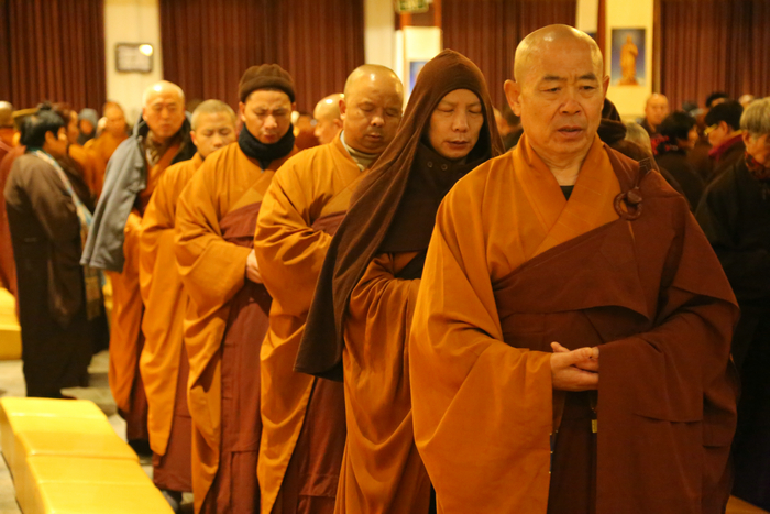 28日晚7:40时许,佛号由六字转四字,开始了礼佛大回向。