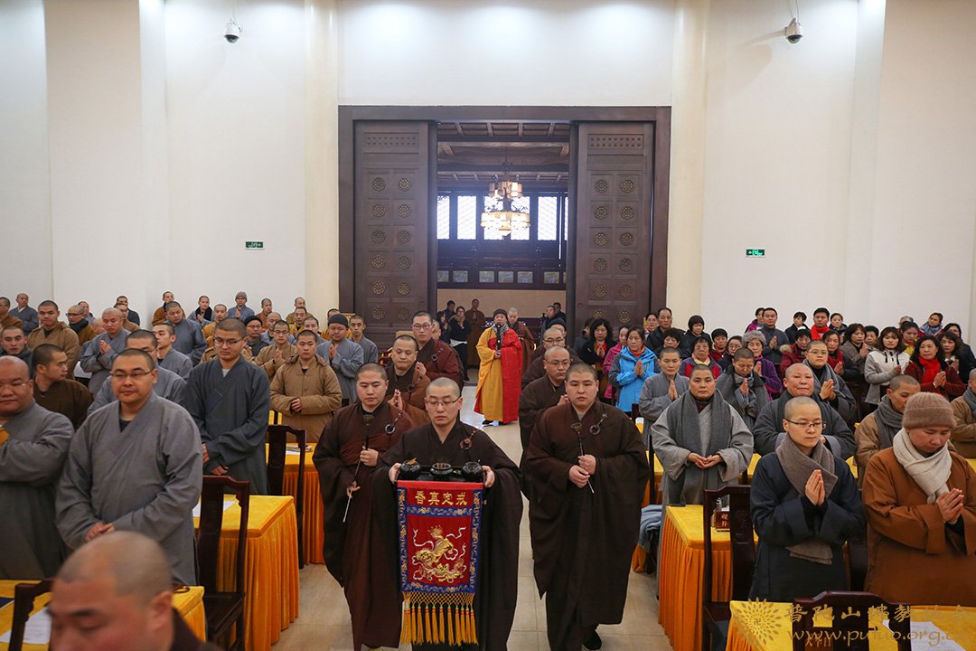 界定法师在迎请中步入普门讲堂