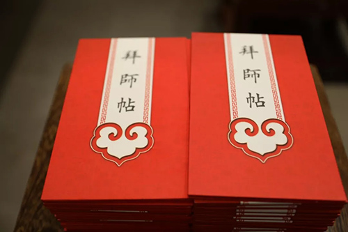 “请弟子向先师孔子行礼...请弟子诵读拜师贴...弟子聆训...师者传道授业,弟子寒窗勤学...拜,兴...礼成!”在赞礼官宏亮的赞唱声音中,书院的老师们正襟危坐于堂前,学员们依古礼端正衣冠,恭敬向老师行拜师礼,并请师以朱砂点额开智,认真聆听师训,描红开笔。